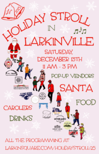 Celebrate the season with a  Holiday Stroll in Larkinville on Saturday, December 13th from 11 am – 3 pm. Some events start earlier and some run later.
